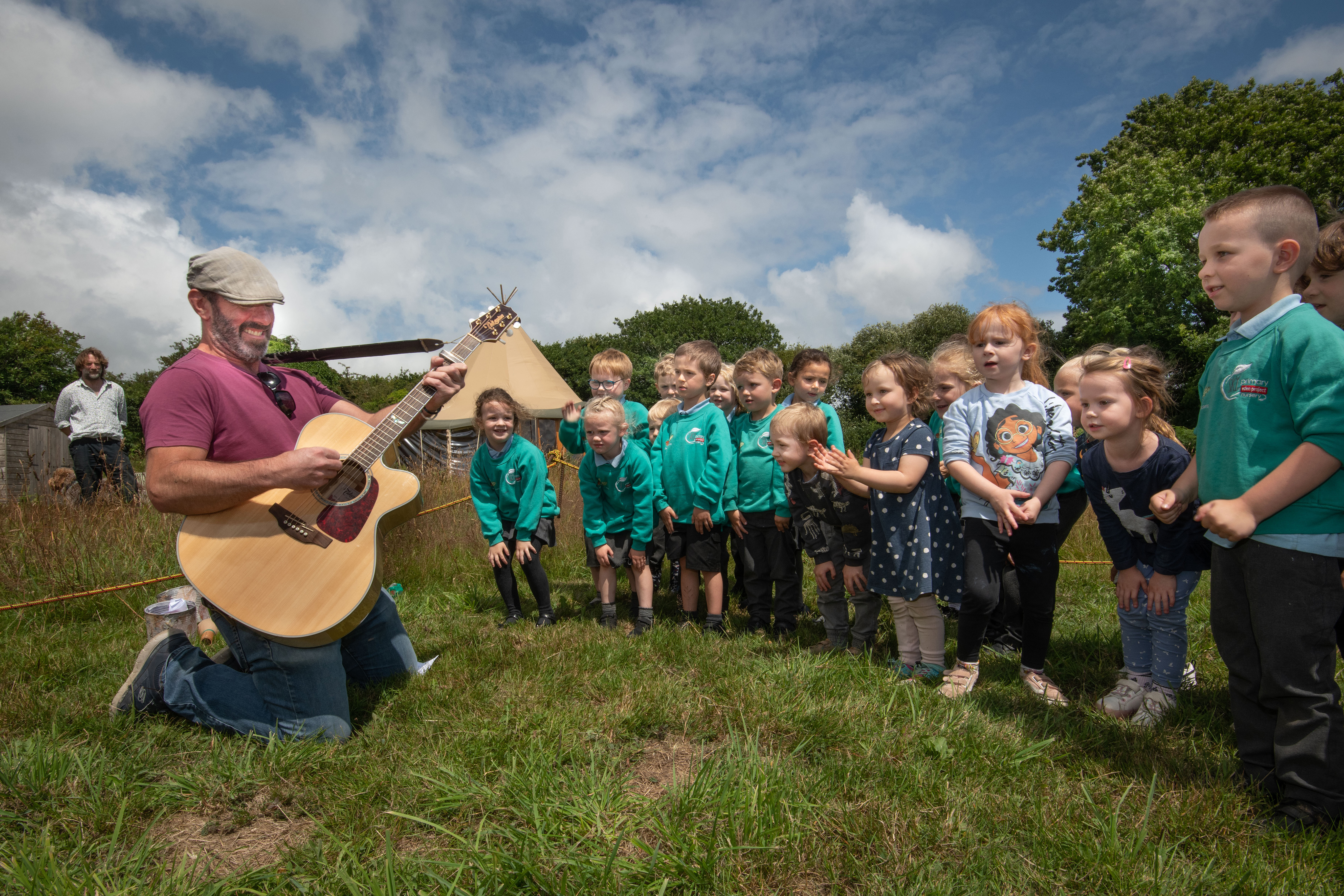 The celebration took place in the school’s Little Carne Meadow, which provides a bountiful outdoor environment for learning beyond the classroom. The children were joined by local musician, Will Keating, to perform their school song, while a cake and cream tea provided refreshments for attendees to enjoy the children’s first year of work, which was proudly on display around the Meadow and Giant Tipi.